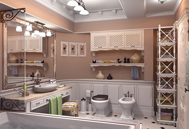 - Декор — картины с пейзажами, старинные зеркала, керамические вазы.