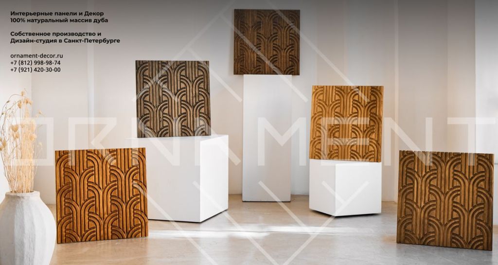 На самом деле, многие люди любят дерево. Но немногие умеют с ним обращаться, т.к. это “живой” материал – а значит берясь за него, придется найти ответы на множество вопросов, которых бы не было, если выбрать, например, мдф. Мы – команда людей, которые любят дерево и умеют с ним работать. Хорошо известно: хочешь сделать хорошо – сделай сам! И мы сделали – открыли свое производство полного цикла, в Санкт-Петербурге – городе, где живем, и который любим. Наш бренд – ORNAMENT – занимается производством интерьерных панелей и декора из массива. Чаще всего у нас заказывают нестандартные проекты по эскизу художника, чтобы встроить в дизайн-проект фантазийное панно или настенные панели. На панелях мы создаем глубокий фрезерованный узор, который, в сочетании с естественной фактурой дерева, наслаиваясь на нее, создает визуальный эффект “двойной экспозиции”, как в фотографии. В результате мы получаем сложный фактурный узор, на живом дереве, к которому хочется прикоснуться, и комната “оживает” благодаря такому оформлению.
