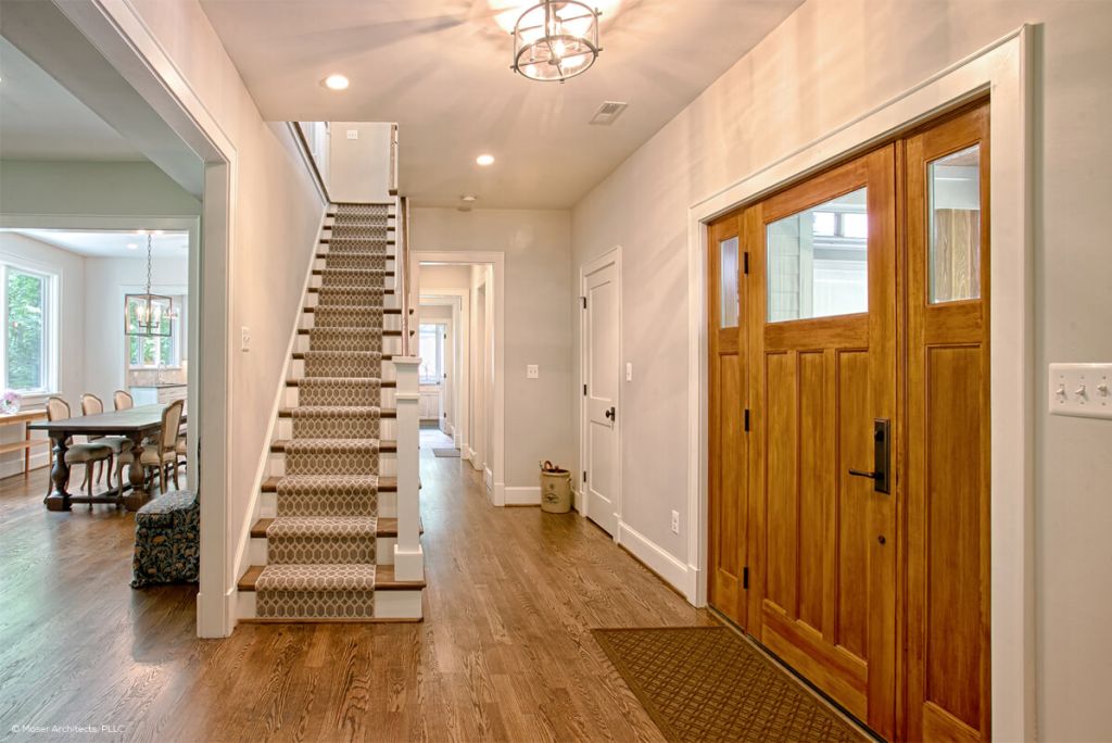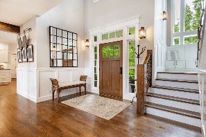 Деревянные двери из массива дуба, ореха или лиственницы — выбор тех, кто ценит природную красоту и классический стиль. Они отлично смотрятся на коттеджах в стиле кантри, рустик или неоклассика.