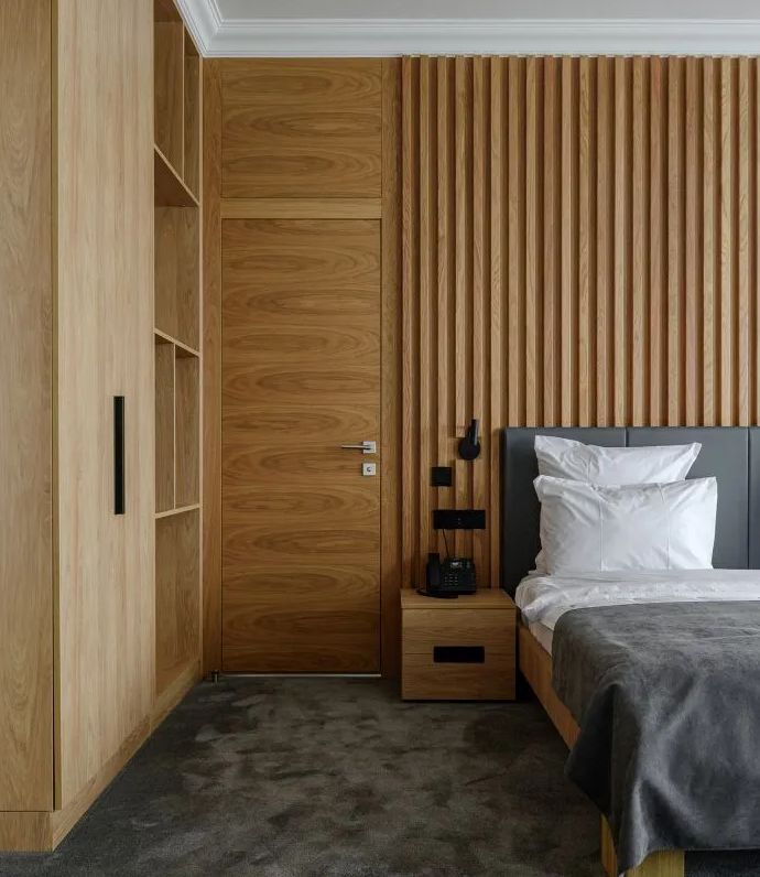 Инновационный подход к производству — визитная карточка фабрики. «Терем» работает со всеми видами покрытий: шпоном, эмалью и плёнкой ПВХ. Особого внимания заслуживают межкомнатные перегородки, которые изготавливаются по индивидуальному дизайну. Компания предлагает 18 базовых оттенков шпона и 1950 цветов по каталогу NCS, что позволяет создавать уникальные интерьерные решения.