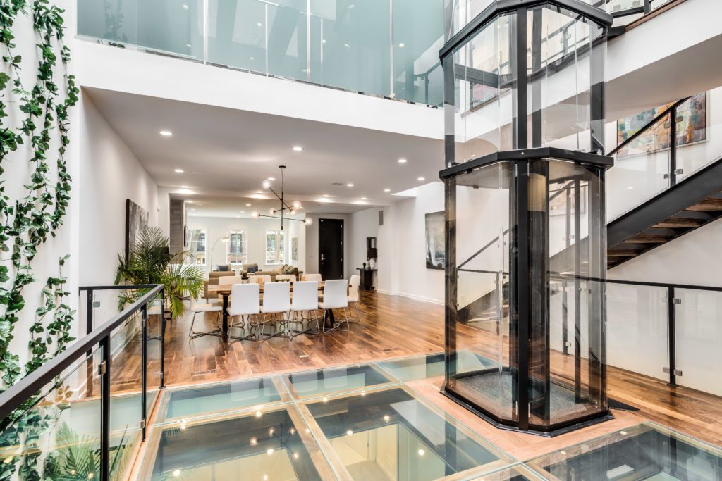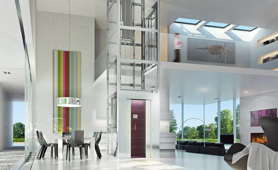 Лифт проектируется на этапе архитектурного решения, его размещают вблизи лестницы, часто в центральной части дома. Минимальные размеры шахты — 120×140 см, грузоподъёмность — от 250 кг.