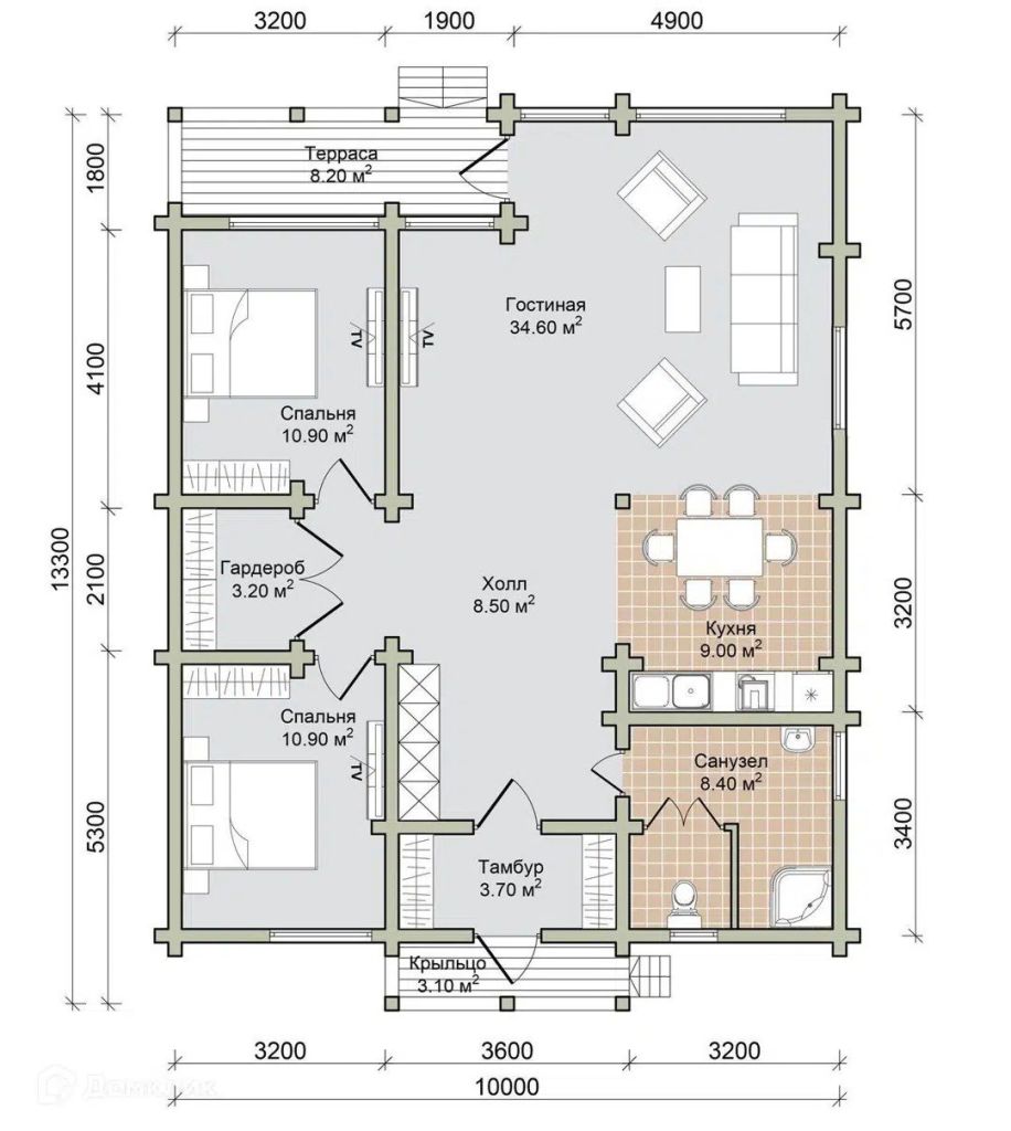 Общая площадь дома – 100 м²