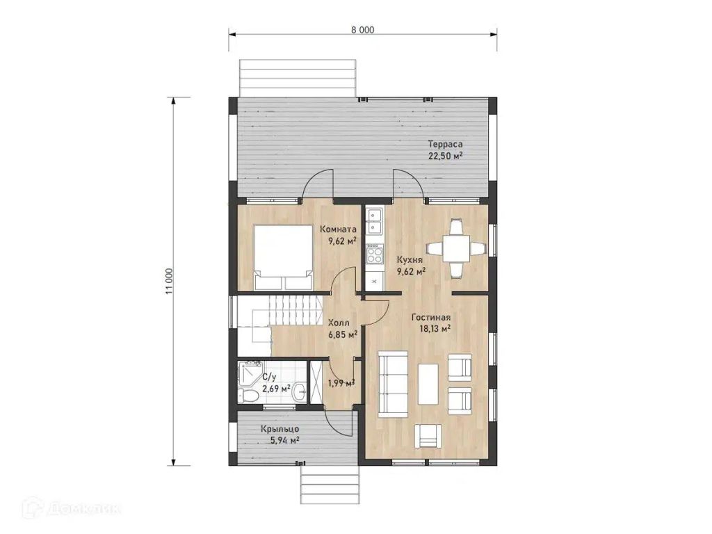 Площадь застройки – 64 м²