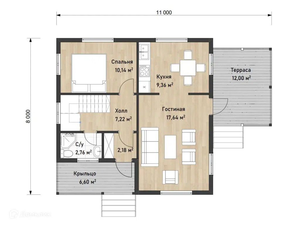 Площадь застройки – 64 м²