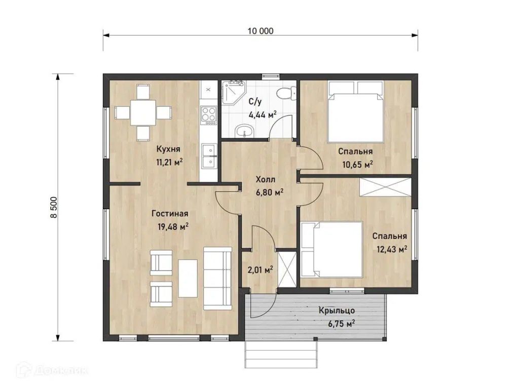 Общая площадь дома – 106,75 м²