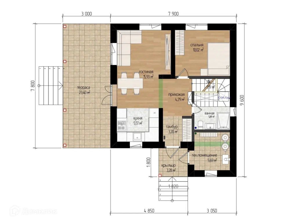 Площадь застройки – 93,8 м²