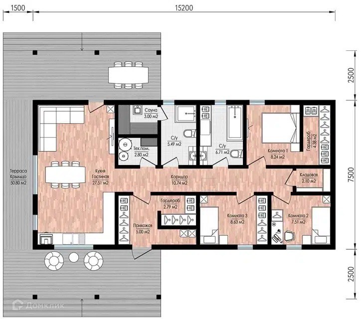 Общая площадь дома – 136 м²