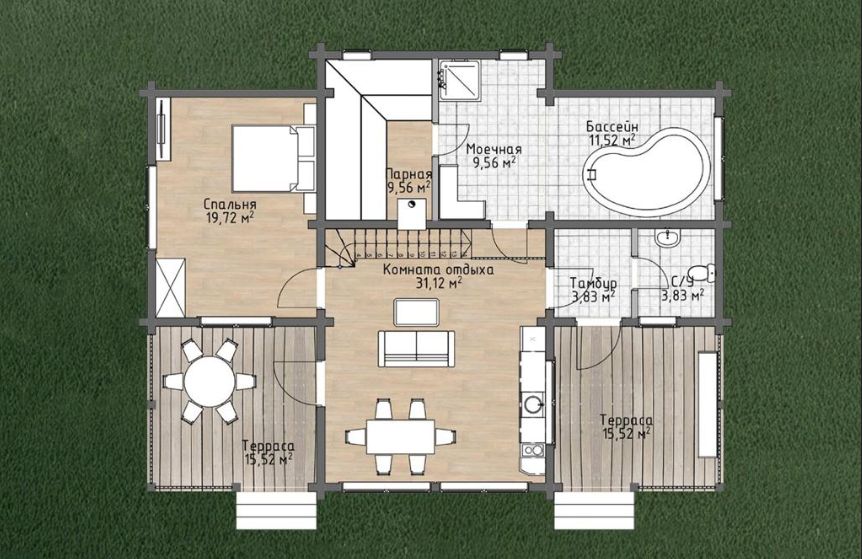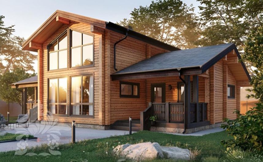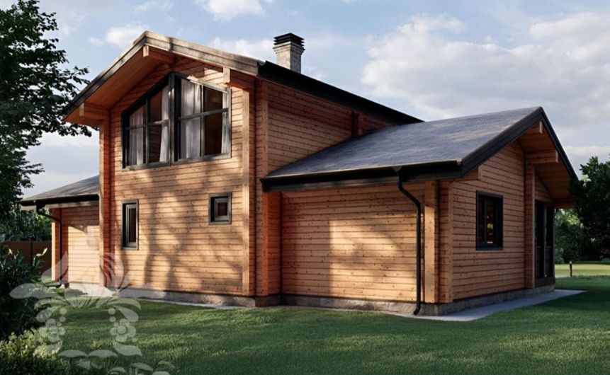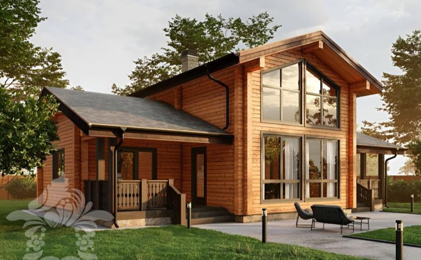Проект от компании «Сибирский лес» — двухэтажный дом из профилированного бруса камерной сушки. 142 м², панорамные окна и аккуратная архитектура для тех, кто выбирает натуральные материалы и стабильный микроклимат.