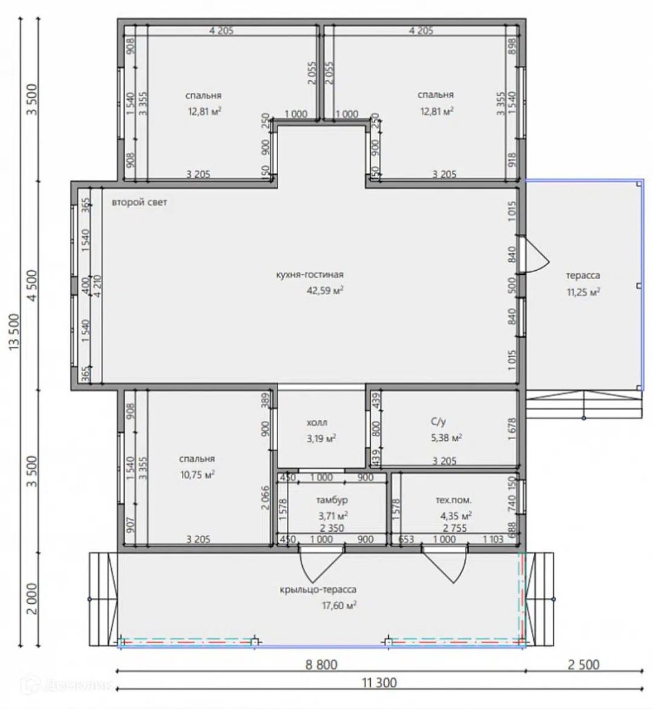 Общая площадь дома – 95,5 м²