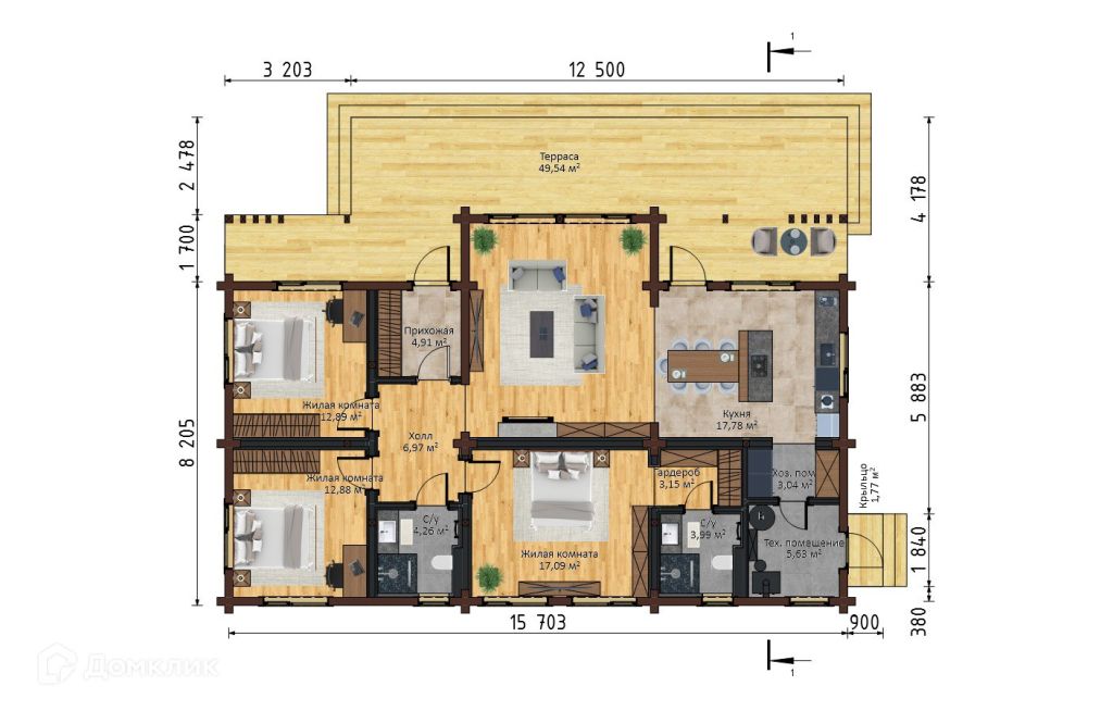 Общая площадь дома – 170 м²