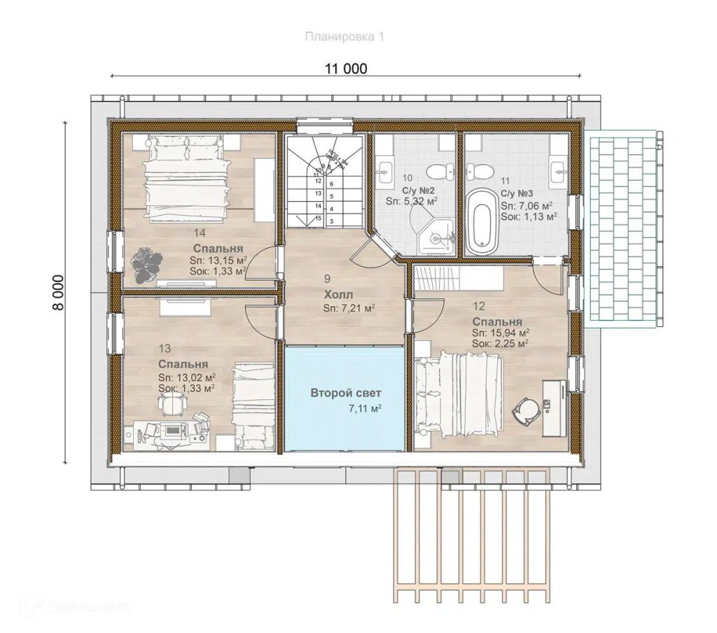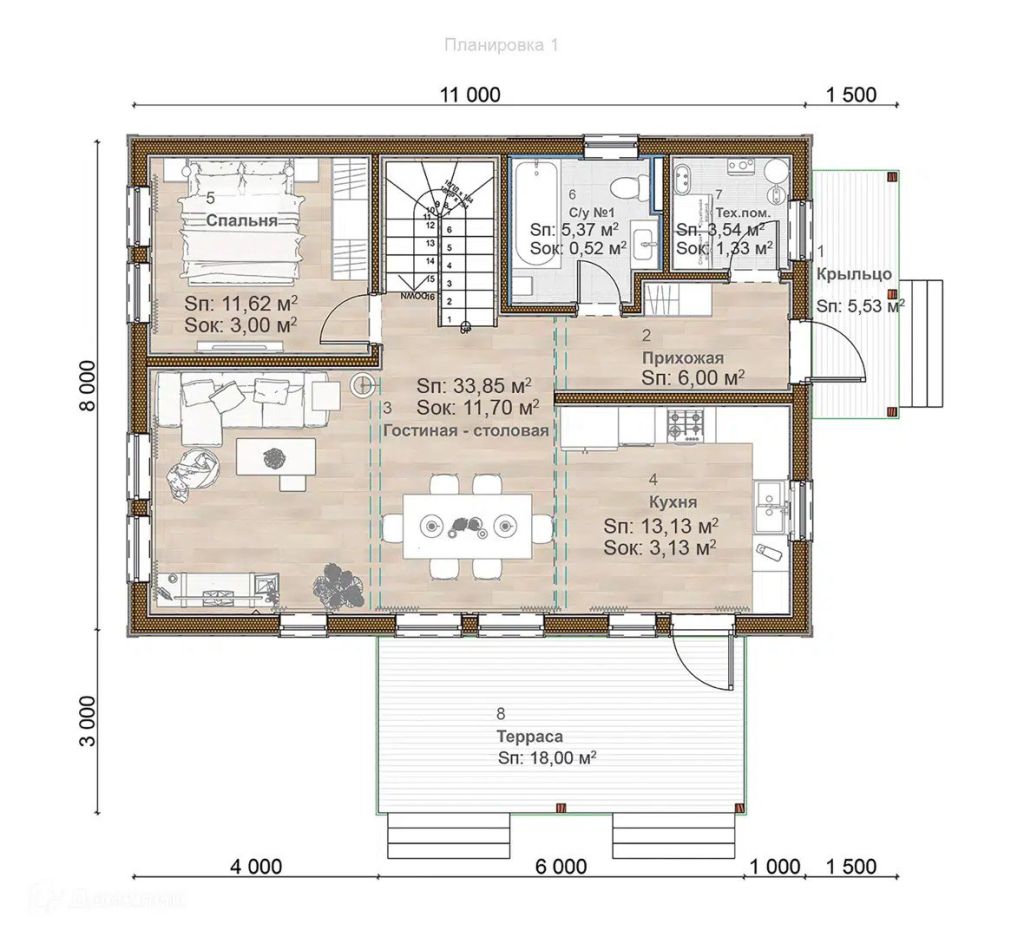 Общая площадь дома – 175 м²