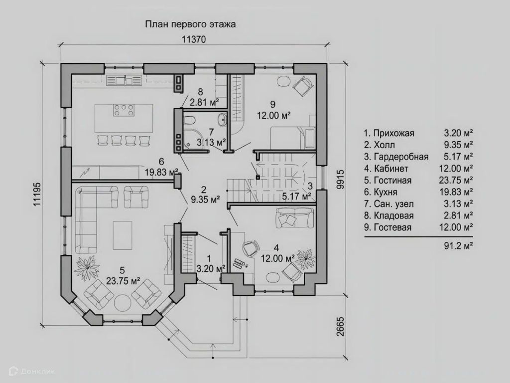 Общая площадь дома – 178,8 м²