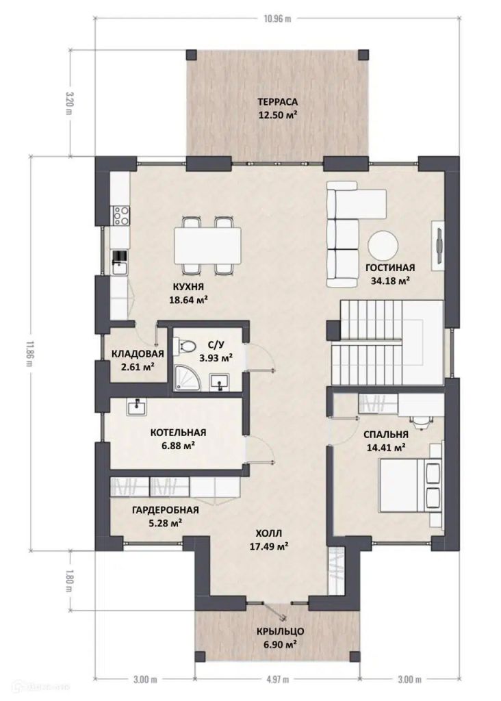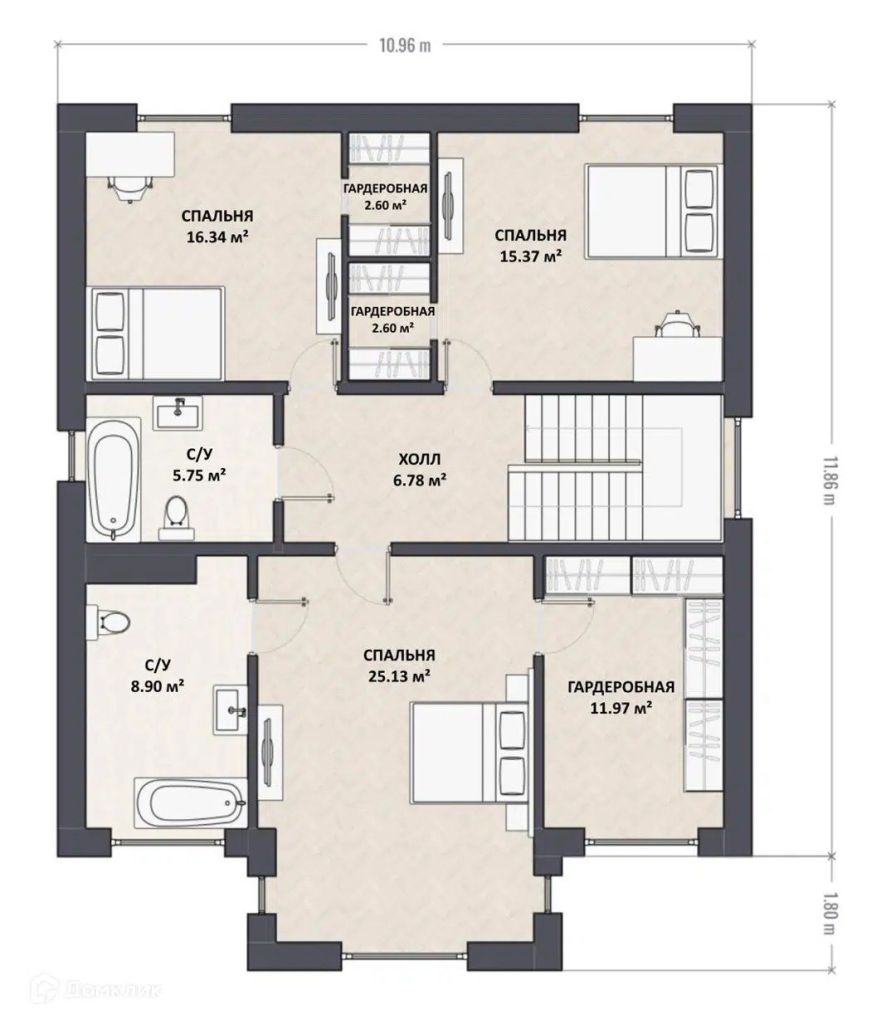 Общая площадь дома – 218 м²