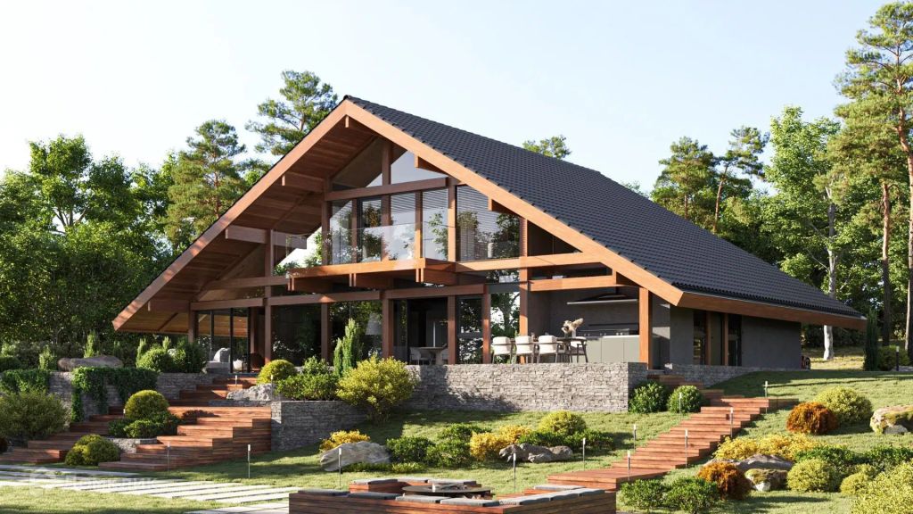 Не просто крыша, а настоящий архитектурный намёк на альпийские шале — только без снега и альпийских коров. Зато с отличным стоком воды и видом, от которого соседи будут завистливо вздыхать. - Панорамные окна