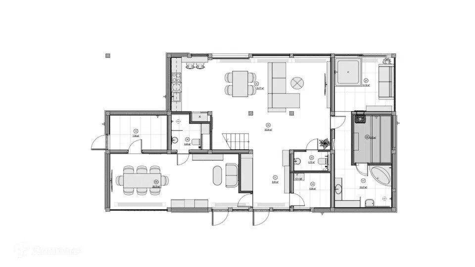 - Общая площадь: 250 м2 — хватит места и для танцев, и для тайного склада новогодних подарков.