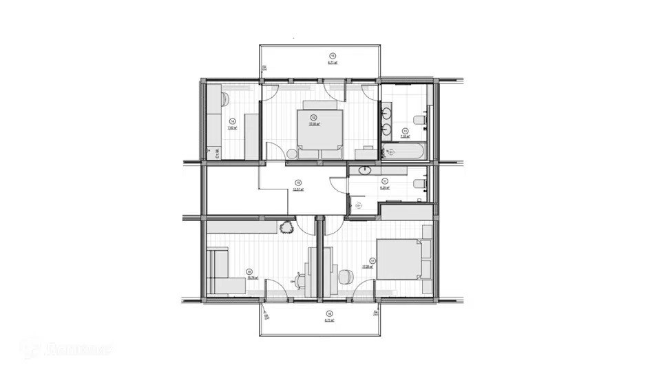 - Спален: 4 — даже если к вам внезапно нагрянут все родственники сразу, никто не останется спать на диване.