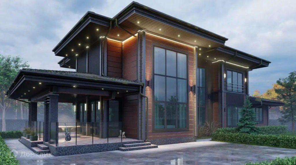 - Плоская крыша с навесами и подсветкой — вечером выглядит как сцена из футуристического фильма.