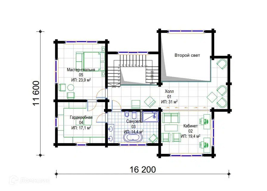 - Кабинет 19,4 м² — работайте с комфортом или просто читайте книги в тишине.