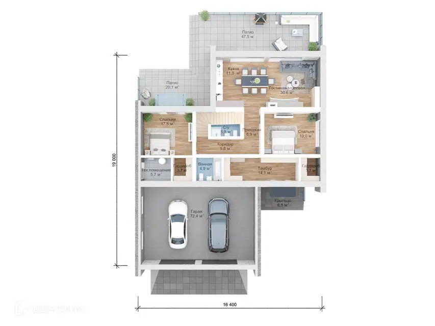 Общая площадь дома – 350 м²