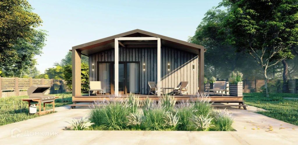 - Стиль «барнхаус». Лаконичный дизайн с чёткими линиями впишется в любой ландшафт — будь то лесная зона, поле или участок с садом. Такой дом выглядит современно и не требует сложного декора.