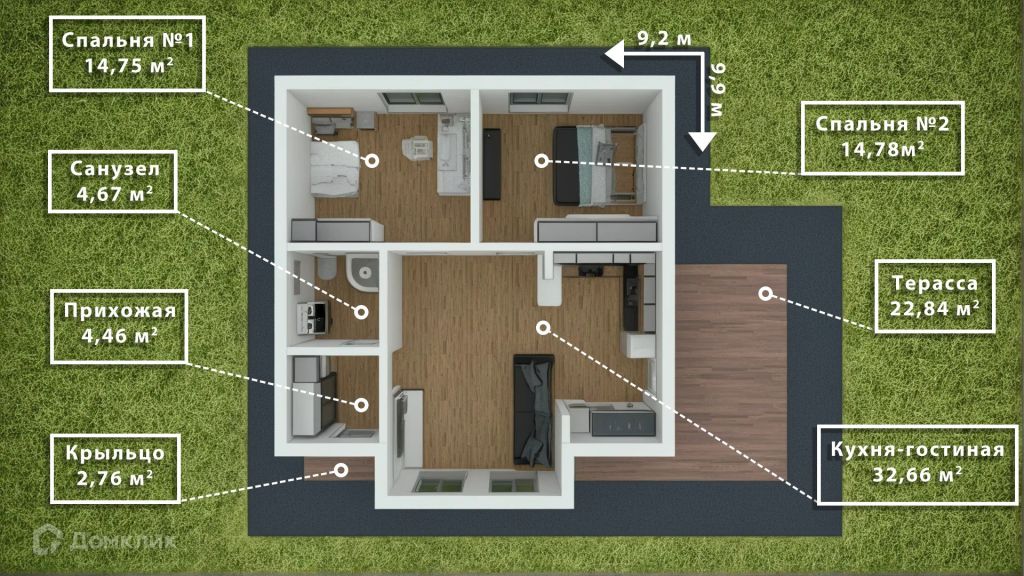 Количество спален – 2