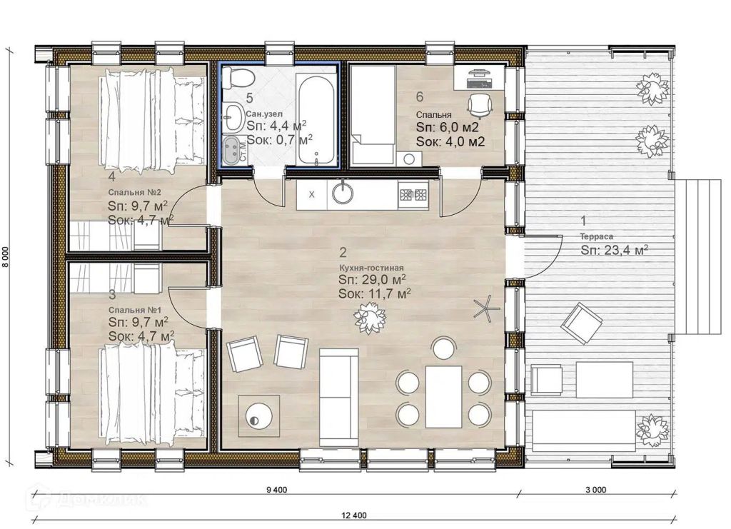 Количество спален – 3