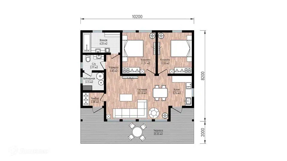 Площадь застройки – 104 м²
