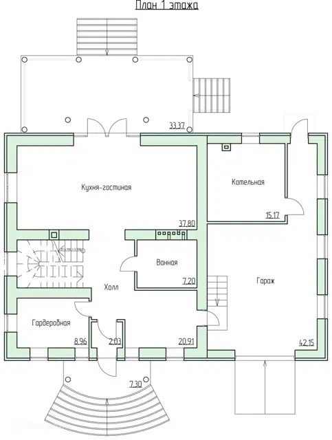 - Площадь застройки — 190 м2 (чтобы соседи невольно вздыхали: «Ну надо же!»).