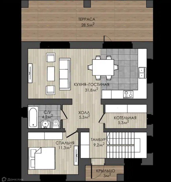 - 126 м² застройки. Дом не занимает всю планету, но места хватает, чтобы чувствовать себя королём (или королевой) своего маленького царства.
