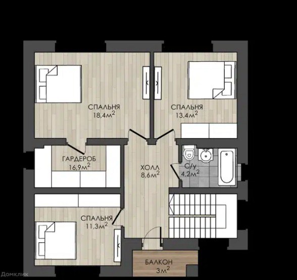 - 4 спальни. Хватит для:
