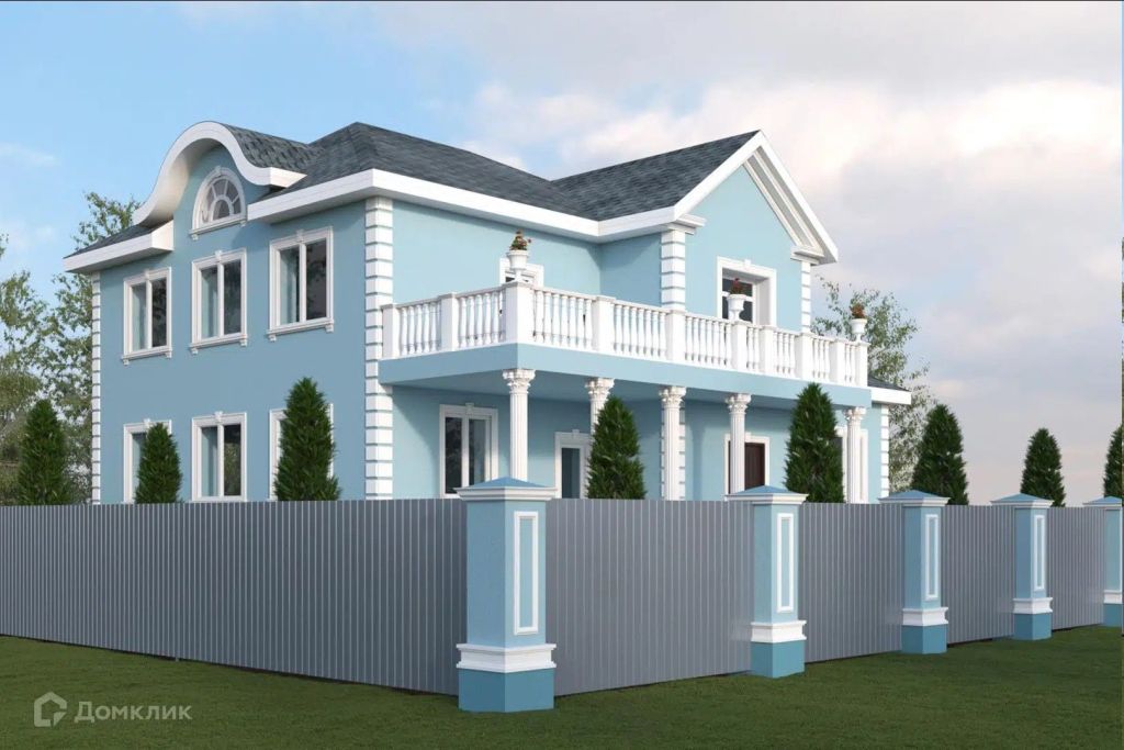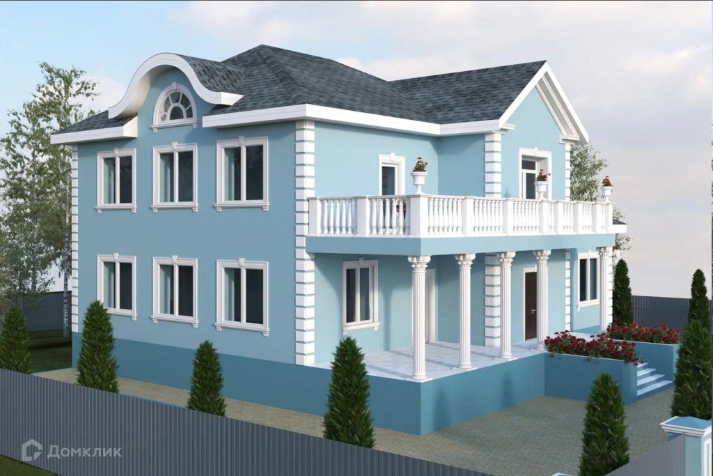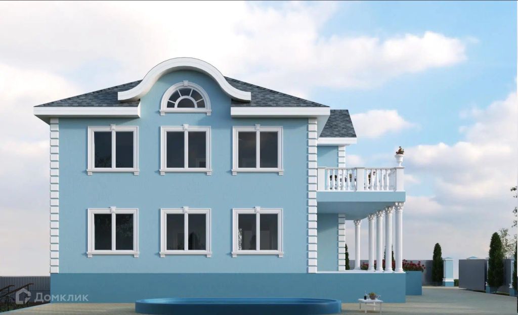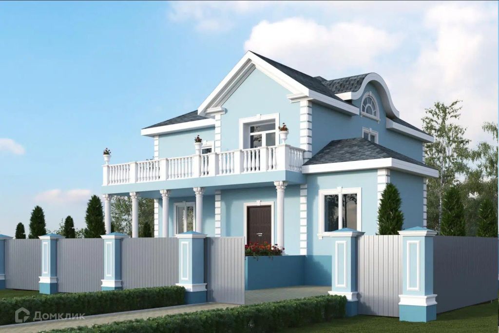 - Стены нежно‑голубые — будто кусочек неба решил поселиться у вас на фасаде.