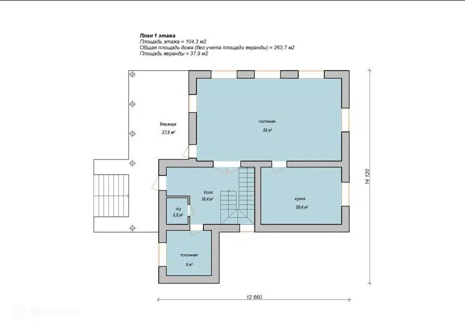 - Голубой фундамент и крыльцо — чтобы даже основание дома напоминало о небе.