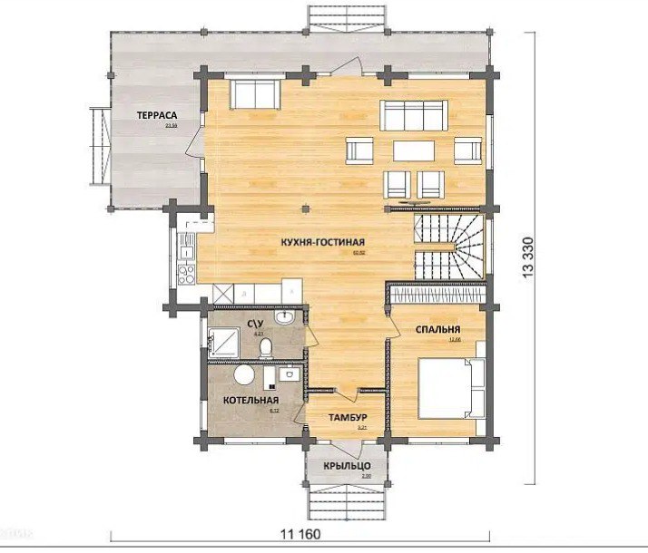 - Два этажа — потому что жизнь слишком коротка для одноэтажных драм. Первый этаж — для гостей, кухни‑гостиной и эпичных семейных ужинов. Второй — для личного пространства, где можно спрятаться с книгой, устроить домашний кинотеатр или просто мечтать о чём‑то великом (например, о том, куда поставить третий диван).