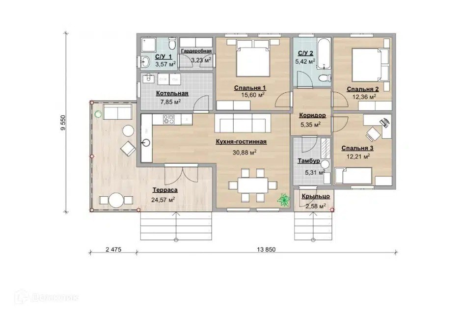 - 3 спальни — для вас, второй половинки и… ну, вдруг принц/принцесса на белом коне заглянет в гости?
