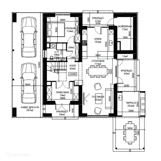 - Площадь застройки 140 м2 — достаточно, чтобы разместить всё, что душе угодно, но не настолько, чтобы заблудиться по пути на кухню.