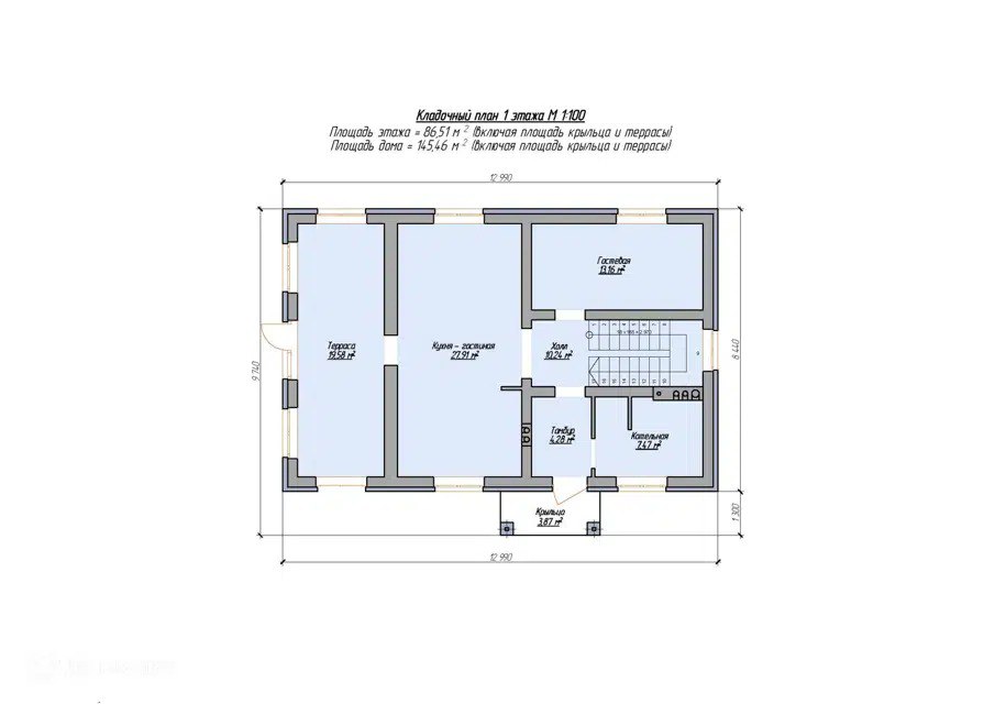 - Фундамент надёжности: площадь застройки — 114 м2. Дом стоит крепко, как дедушка на утренней зарядке.
