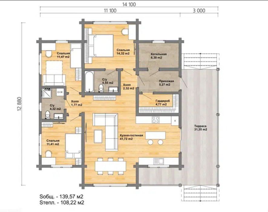 - 140 м² чистой радости. Целых 140 квадратных метров, где можно: