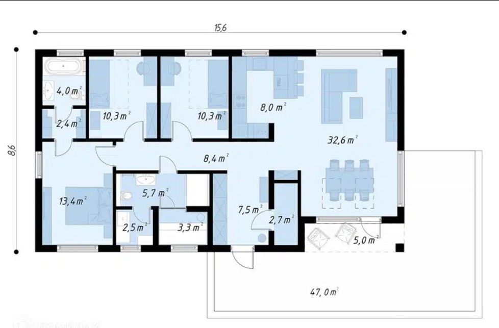 - Для любителей простора, но без «элитного» размаха.