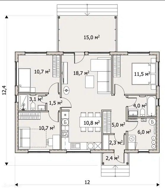 - Два санузла — никаких утренних очередей и «кто последний в душ?». Каждый может спокойно собраться на работу, не нарушая чужой режим.