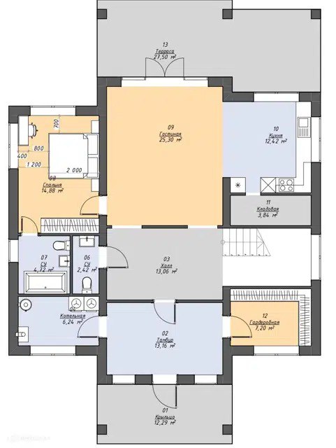- Площадь застройки — 246,71 м2. Дом настолько солидный, что соседи будут спрашивать: «Это вы дворец строите или просто решили переплюнуть всех в районе?»