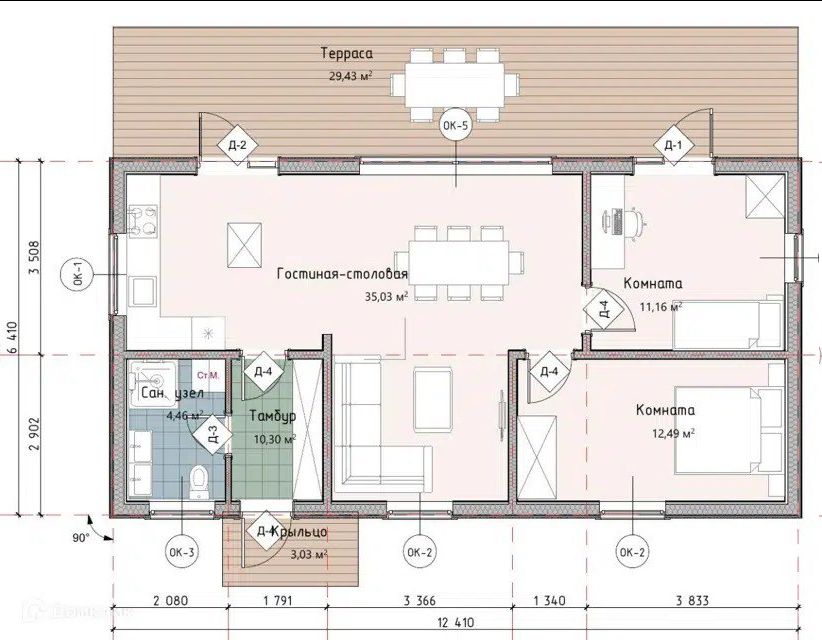 - 79 м² застройки — компактный, но не стеснённый: как идеальный бутерброд — всё на месте, ничего лишнего.