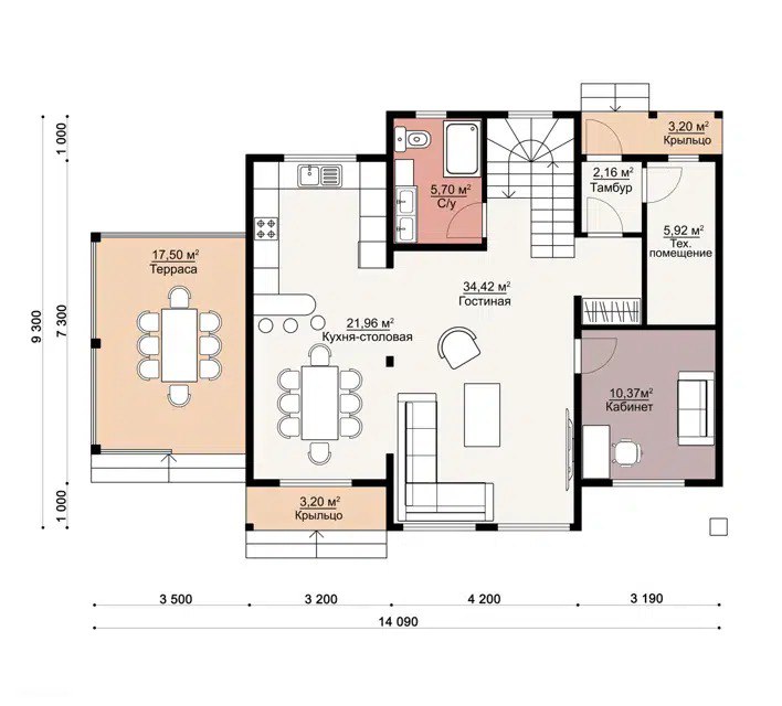 - Два этажа — потому что один — это скучно! Первый этаж: зона гостеприимства и хаоса. Второй этаж: царство сна и тайных перекусов под одеялом.