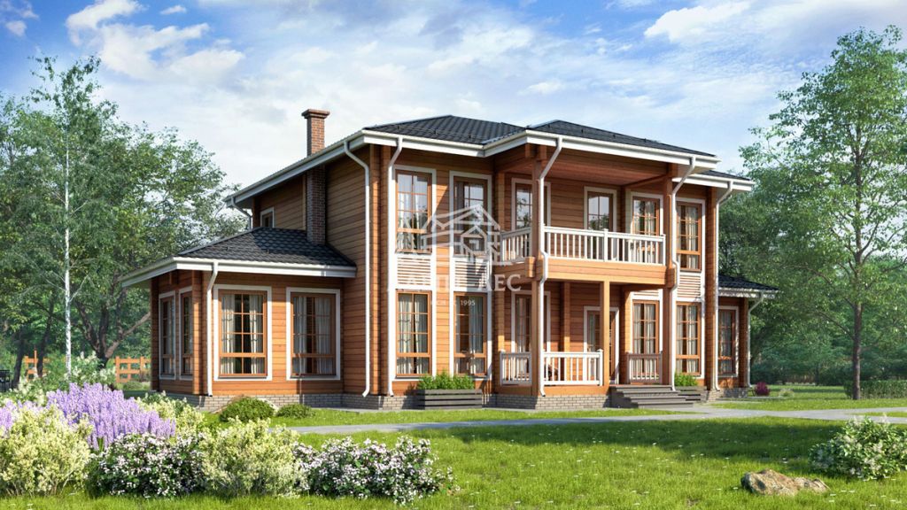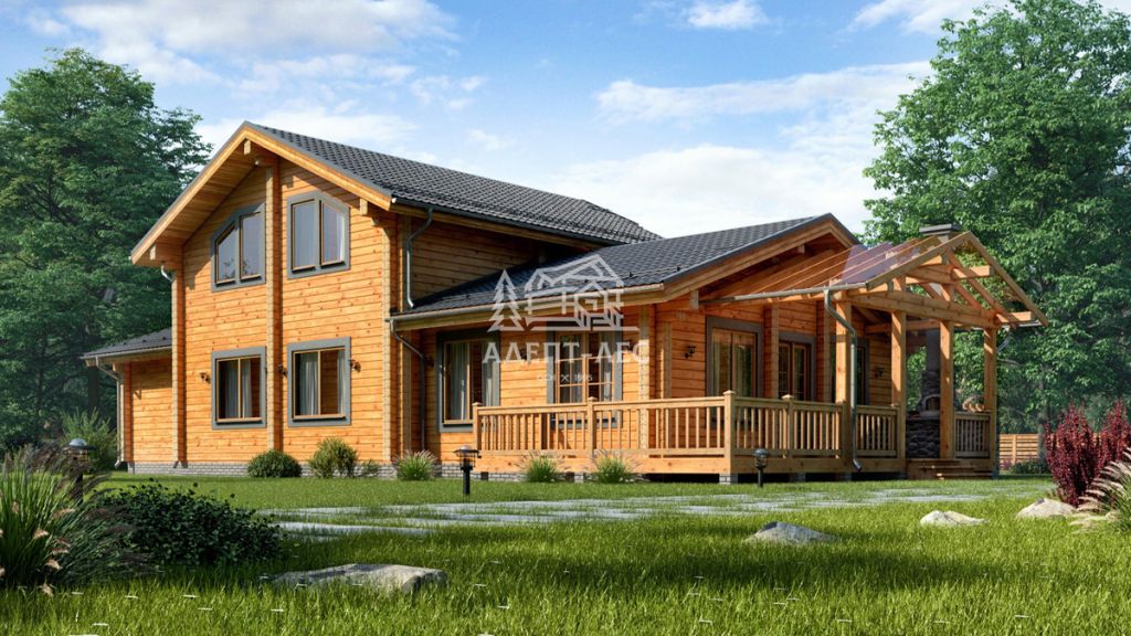 Используется брус финского профиля с утеплителем «Политерм». Ламели склеиваются безопасным клеем AkzoNobel (Нидерланды) — дом будет экологичным и тёплым круглый год.