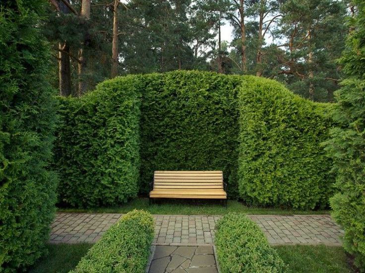 – Высокие (от 2 м) создают полноценные «комнаты» в саду, подходят для маскировки неприглядных зон (хозпостроек, забора). Примеры растений: туя западная, ель обыкновенная, можжевельник, граб, липа.