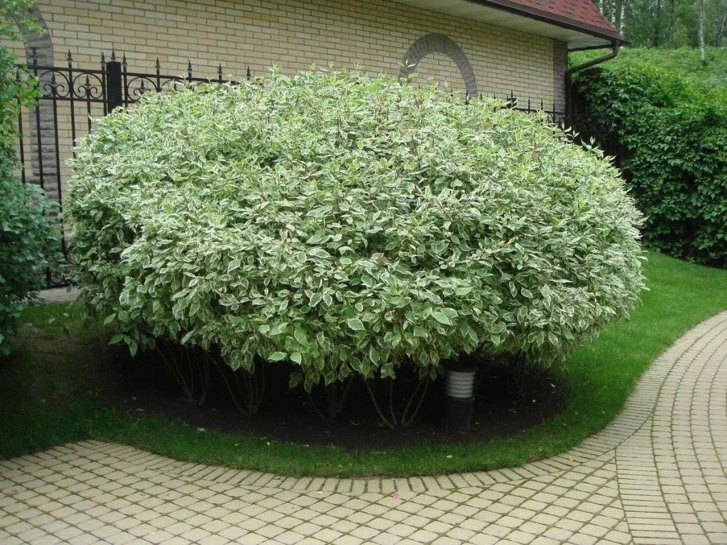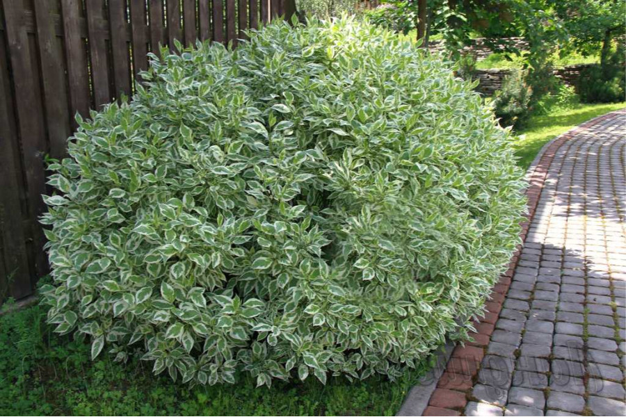 – Листья с белой каймой, высота до 3 м. Подходит для живых изгородей и групповых посадок.