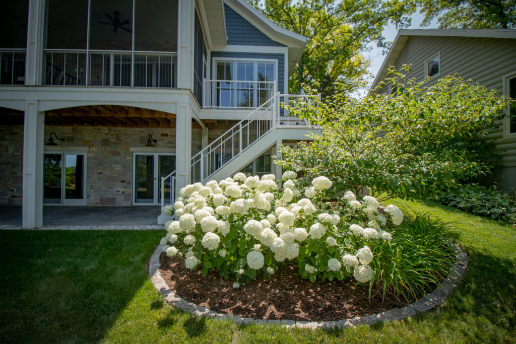 Одиночно посаженная гортензия становится ярким акцентом, притягивающим взгляд. Для таких посадок выбирают крупные сорта с эффектной кроной и пышными соцветиями, например, «Grandiflora», «Limelight» или «Phantom». Лучшие места для солитерных посадок — центр газона, зона отдыха или поворот садовой дорожки. - Зонирование и маскировка
