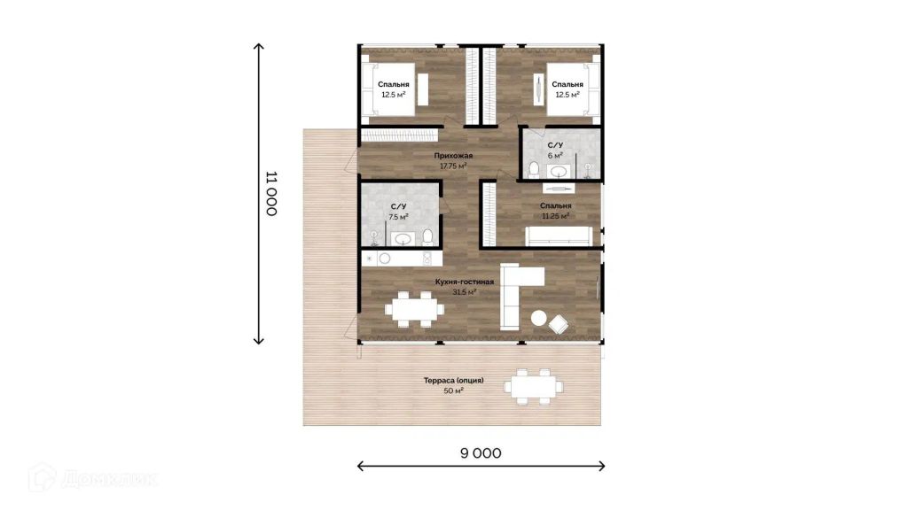 Общая площадь дома – 99 м²