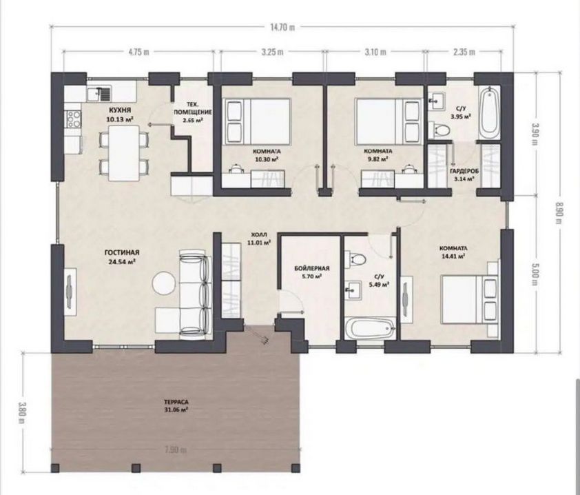 - Будущее расширение: площадь застройки оставляет пространство для пристройки террасы или гаража.