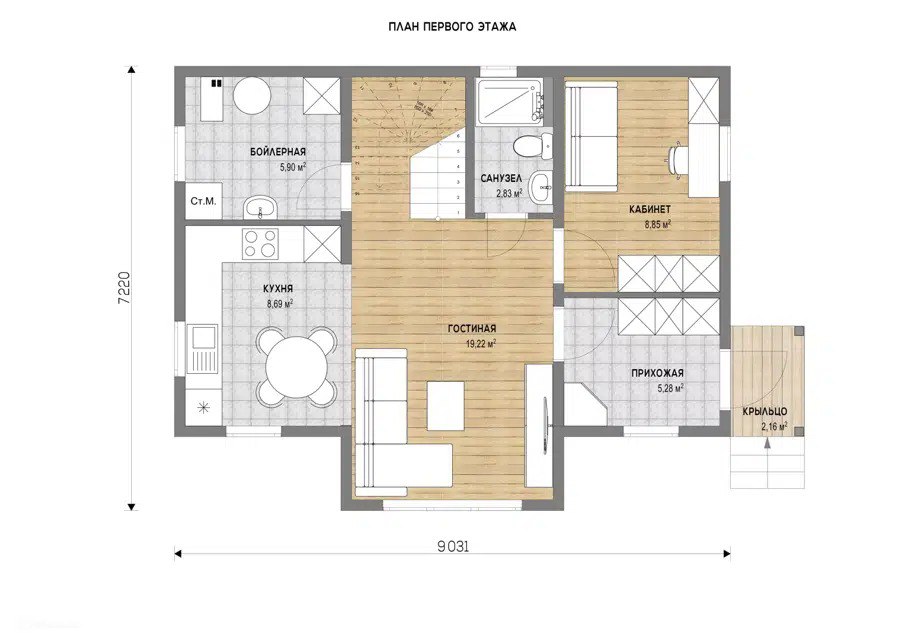 Общая площадь дома – 117 м²