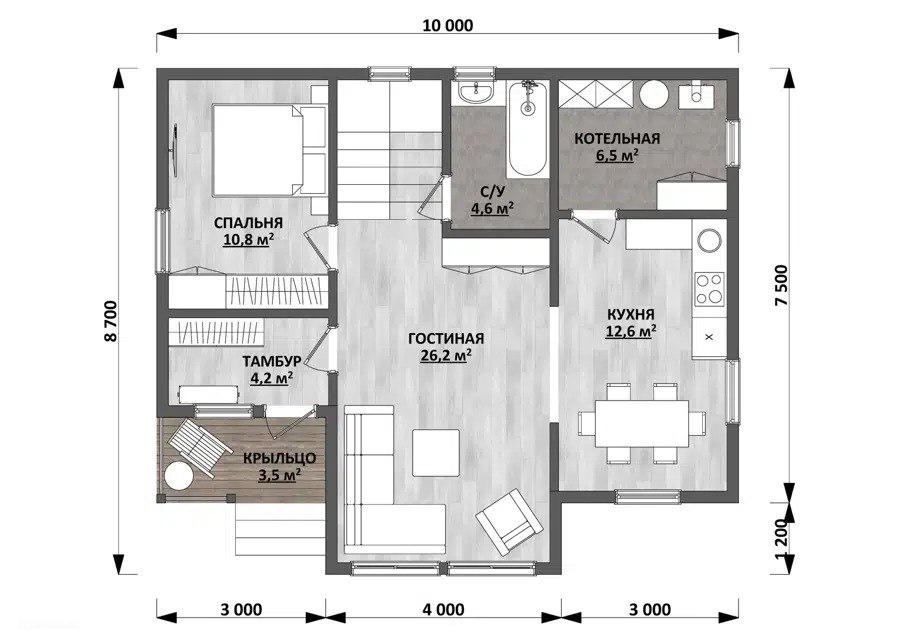 Общая площадь дома – 150 м²